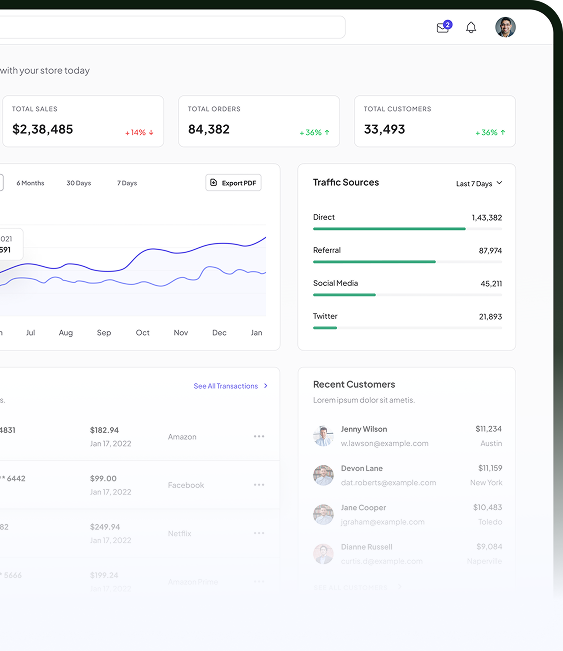 We create a central hub where you can manage all aspects of your online store. Empowers businesses to streamline operations, scale efficiently, and address customer needs promptly, all while offering a comprehensive view of business performance-all inclusive on one screen. We prioritize the features and tools that matter most to you, integrating them seamlessly into a robust, user-friendly admin interface.