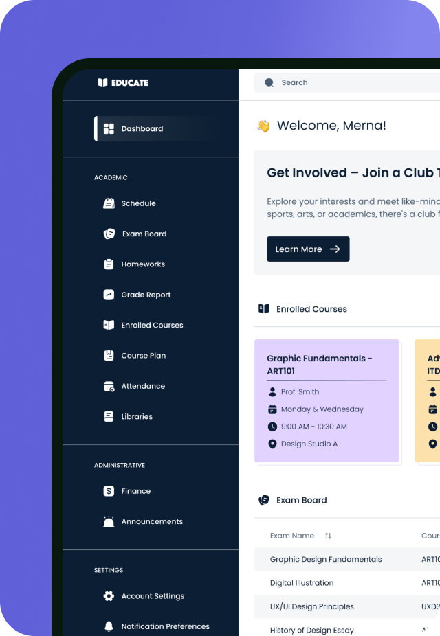 Stay informed with timely alerts about classes, updates, and deadlines.